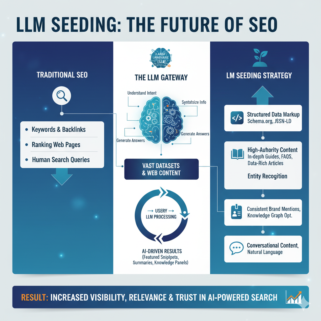 The biggest change: Traditional SEO aimed to get your page to rank. LLM Seeding aims to get your information to be recognized and utilized by the AI itself, regardless of whether it’s presented as a direct link, a featured snippet, or part of a generative answer.